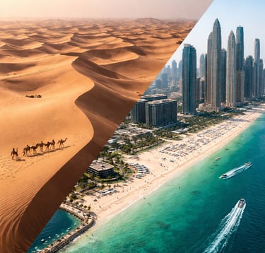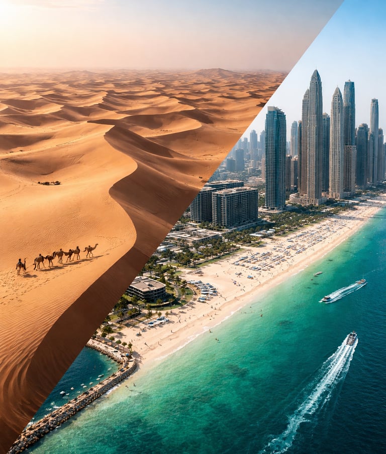 Contrasting experiences between the coastline and the desert, offering both relaxation and adventure.